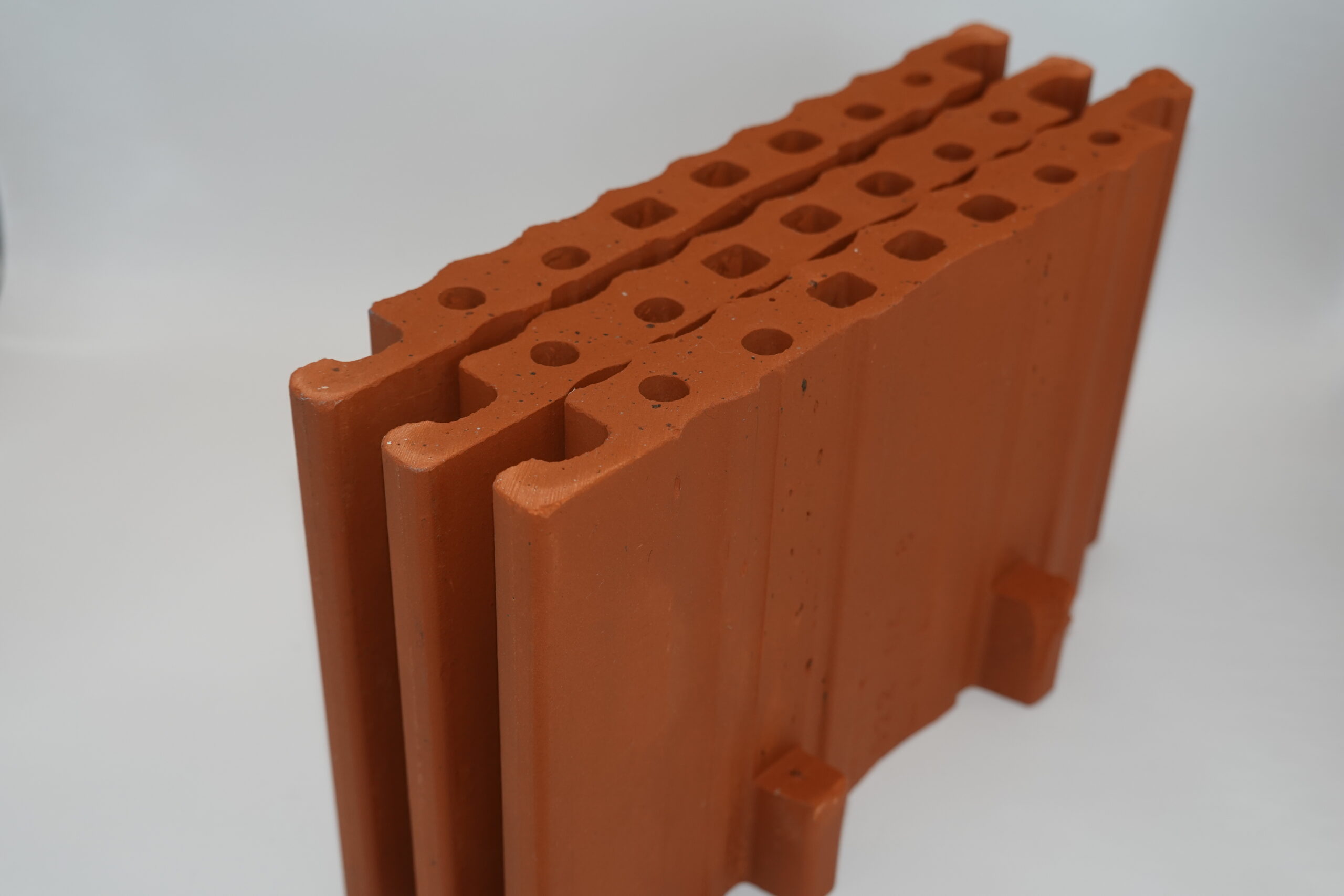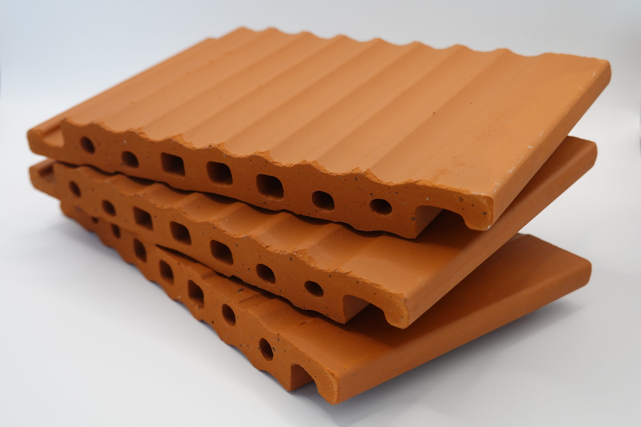 Kompletter Strangfalz-Ziegel, sauber in 3 identische Stücke geschnitten